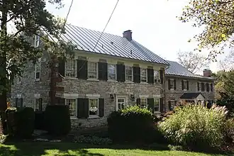 The oldest section is 1+1⁄2 stories and three bays wide. The central section is 2+1⁄2 stories and also three bays wide, with a gable and pent roof. The eastern section is also 2+1⁄2 stories, six bays wide, with a gable roof. Also located on the property is a late-eighteenth century, stone, Pennsylvania German bank barn.[2]