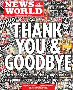 - ^ "News of the World to close amid hacking scandal". BBC News. 7 July 2011.