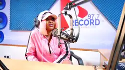 Pia Pounds during a radio interview at Record Fm in Kampala in 2019.