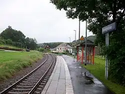 Until 2004, the platform consisted of two parts that were separated by a road. The southern part was fundamentally renovated in the summer of 2004 and the northern part was demolished. The entrance building of 1877 was demolished in 2005 and replaced by a simple passenger shelter.[5]