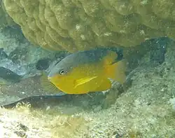 Pomacentrus simsiang, the blueback damsel, is a damselfish from the Indo-West Pacific. It occasionally makes its way into the aquarium trade. It grows to a size of 7 cm in length.