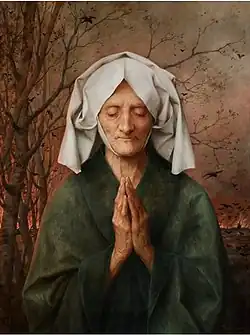 Celtic, Germanic and Slavic religions are recorded much later, and much more fragmentarily, than the religions of classical antiquity. They nevertheless show substantial parallels to the better-attested religions of the Iron Age. In the case of Germanic religion, the practice of prayer is reliably attested, but no actual liturgy is recorded from the early (Roman era) period. An Old Norse prayer is on record in the form of a dramatization in skaldic poetry. This prayer is recorded in stanzas 2 and 3 of the poem Sigrdrífumál, compiled in the 13th century Poetic Edda from earlier traditional sources, where the valkyrie Sigrdrífa prays to the gods and the earth after being woken by the hero Sigurd.[30] A prayer to Odin is mentioned in chapter 2 of the Völsunga saga where King Rerir prays for a child. In stanza 9 of the poem Oddrúnargrátr, a prayer is made to "kind wights, Frigg and Freyja, and many gods,[31] In chapter 21 of Jómsvíkinga saga, wishing to turn the tide of the Battle of Hjörungavágr, Haakon Sigurdsson eventually finds his prayers answered by the goddesses Þorgerðr Hölgabrúðr and Irpa.[32] Folk religion in the medieval period produced syncretisms between pre-Christian and Christian traditions. An example is the 11th-century Anglo-Saxon charm Æcerbot for the fertility of crops and land, or the medical Wið færstice.[33] The 8th-century Wessobrunn Prayer has been proposed as a Christianized pagan prayer and compared to the pagan Völuspá[34] and the Merseburg Incantations, the latter recorded in the 9th or 10th century but of much older traditional origins.[35]
