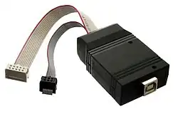 In some cases, a programmer connects to a device via a cable to a connection port on the device. This is sometimes called on-board programming, in-circuit programming, or in-system programming.[6][7][8]