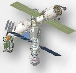 - ^ The port had the temporary docking adapter before the SSVP-M or "Hybrid" standard, consisting of the traditional SSVP-G probe‑and‑drogue soft-dock mechanism and an APAS-95 hard-dock collar before Progress M-UM arrival
