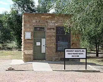 The town's jail still stands and efforts have been made to restore it as a historical landmark. The Prospect Heights jail was built in 1906 and has since been listed in the Colorado State Register of Historic Properties. Several other early buildings still exist as well, including the Prospect Heights Mercantile Store, which is now running as a store again.