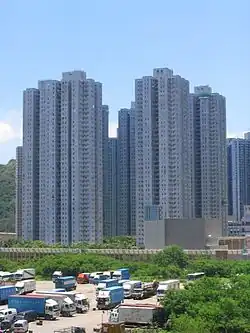 Yee Ming Estate (Chinese: 怡明邨) is a public rental estate in Tsueng Kwan O town centre. It consists of three residential blocks comprising 2,059 flats. The towers are 32-33 storeys in height and will accommodate a projected population of about 5,700.[69]