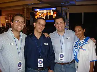 Former PRSSA Executive Director Raúl Vidal, PRSSA Vice President William-José Vélez González, then PRSSA President José Cabrera and then PRSSA Secretary Astrid Martínez at the 2008 New Progressive Party Convention.