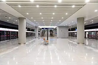 Platform of Qinghe Railway Station for the Beijing-Zhangjiakou intercity railway