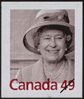 At Rideau Hall, on December 19, 2003, Governor General Adrienne Clarkson, along with Canada Post President and CEO André Ouellet, and Canadian pop music artist and photographer Bryan Adams, unveiled a 49 cent domestic rate Canada Post definitive stamp bearing the image of Queen Elizabeth II. Canada Post issued this stamp partly at the urging of the Monarchist League of Canada; the definitives were issued as double commemorative-definitives (normally these types of stamps are different) to mark the Queen's Golden Jubilee.[4][5]