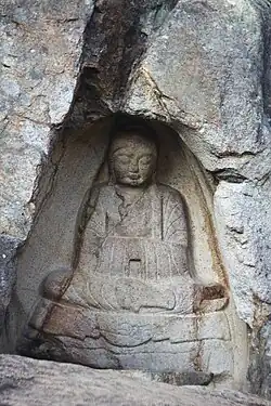 Rock-carved Seated Buddha in Bulgok Valley of Namsan Mountain, Gyeongju, also known as Grandmother Buddha (할매부처), was claimed that Queen Seondeok was the model for this statue by Professor Kim Ki-heung (김기흥).[1][2]