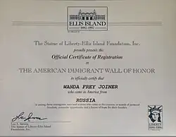 3. ^ "The American Immigrant Wall of Honor". Liberty Ellis Foundation. The Statue of Liberty - Ellis Island Foundation, Inc.