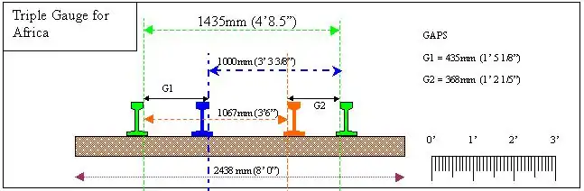 1,067 mm (3 ft 6 in) gauge to match Zambian/Southern African networks.