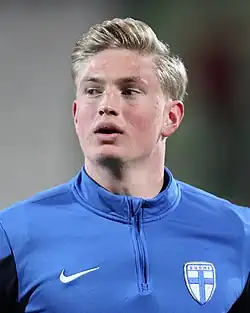 Jensen was a youth international for Finland at various youth levels.[18] He captained Finland U21 in the 2019 UEFA European Under-21 Championship qualification.[19]