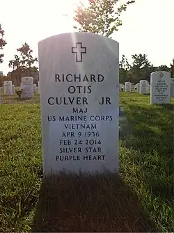 Richard Otis "Dick" Culver Jr. (April 9, 1936 – February 24, 2014) was a decorated United States Marine Corps officer who was one of the founders of the Marine Corps Scout Sniper School in Quantico, Virginia.[2][3] Culver served in combat in Vietnam and was awarded the Silver Star for his heroic actions during a firefight in 1967.[4]