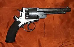 The .436 Deane and Adams was a five-shot percussion (cap-and-ball) revolver with a spurless hammer, and the first revolver with a solid frame. The revolver used a double-action only system in which the external hammer could not be cocked by thumbing it back, like most other pistols of the era, but instead cocked itself when the trigger was pulled. This made it possible to fire the gun much more rapidly than contemporary single-action revolvers, such as the Colt, which had to be cocked before each shot.[3]
