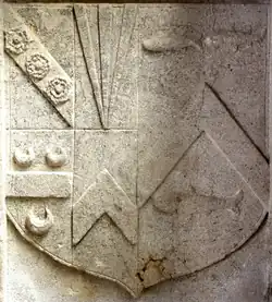 - ^ Pole, p.486; Griggs, p.4, states the chevron is for Fulford, yet his grandfather's 2nd wife Anna/Alice Fulford, daughter of Sir Baldwin Fulford, was not an heiress (she had a brother) and thus the Fulford arms would not be quartered by the Cary family, according to the laws of heraldry