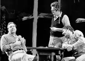 Moulson (left) with Julian Patrick, and Archie Drake in the 1970 world premiere of Carlisle Floyd's Of Mice and Men