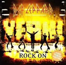 English hard rock band Def Leppard began playing the song on their 2005 tour in support of their compilation album Rock of Ages: The Definitive Collection along with a cover of Badfinger's "No Matter What" which appeared on the album.[48] The band released a studio recording of the song as a digital single in May 2006 preceding the release of their album Yeah!, which features cover versions of 1970s rock hits.[47] The single spent 18 weeks on the US Hard Rock chart, peaking at No. 18 in June 2006.[49] The song has since become a staple in Def Leppard's setlists, often following a Rick Savage's bass solo.[50] "We took that one to pieces and rewrote it…" observed Joe Elliott. "American radio still plays 'Rock On' every day, sandwiched between Lynyrd Skynyrd and Zeppelin."[51] The radio remix version of the song also appeared on Def Leppard's 2018 compilation album The Story So Far – The Best Of.[52]