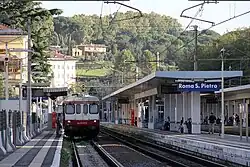 Roma San Pietro railway station (Italian: Stazione di Roma San Pietro) is a major station serving the city and comune of Rome, Italy. Opened in 1894, the station forms part of the Pisa–Livorno–Rome railway. It is also the junction for the short, single track Rome–Vatican City railway, which crosses into Vatican City after passing over a viaduct.