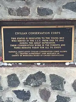 Chapter 24 of the National Association of Civilian Conservation Corps Alumni and the Middlesex County Board of Chosen Freeholders erected a monument dedicated on 31 March 2003 recognizing the work of the Civilian Conservation Corps (1933-1942). The statue, nicknamed "Iron Mike", is a representation of the typical CCC worker, spade in hand. It is situated on Lafayette Avenue near the corner of US Route 1 North and Grandview Avenue.