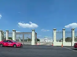 The Royal Plaza with a glimpse of Ananta Samakhom Throne Hall, completely sealed off by a fence as of 2022