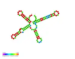 ![]() Predicted secondary structure and sequence conservation of RsmW small RNA | |