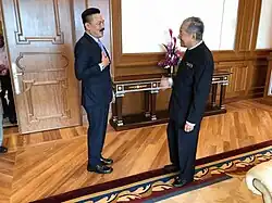 Rusdi Kirana became active in politics after stepping down from his business leadership role in Lion Air Group.[5] He started to be active in politics in 2013 and joined the National Awakening Party (PKB) as early as January 2014, becoming the party's vice chairman.[6] He was one of the candidates for Minister of Transportation during Joko Widodo's first term.[7] However, Rusdi Kirana prefers to be an ambassador instead of a minister, citing the potential of conflict of interest as Rusdi Kirana still owns shares of Lion Air.[8] He was nominated by PKB to be a part of the Presidential Advisory Council and on January 19, 2015, he was sworn in as a member in the council.[9][10]