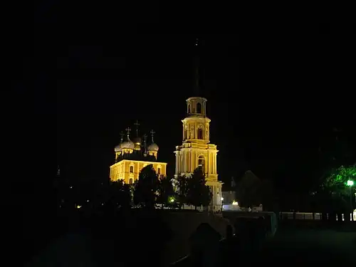 The Ryazan Kremlin (Russian: Рязанский кремль), the oldest part of the city of Ryazan, is a historical and architectural museum. It is one of the oldest museums in Russia. Located on the top of a steep hill, it is surrounded by rivers and a dry moat. This monument of architecture and nature reserve of federal importance is included in the State Register of Especially Valuable Objects of the People of the Russian Federation. The management of this museum is the responsibility of the Federal State Institution of Culture "Ryazan Kremlin"