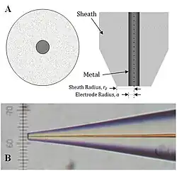 Early SECMs were constructed solely by individual lab groups from a set of common components including potentiostat (or bipotentiostat) and potential programmer, current amplifier, piezoelectric positioner and controller, computer, and UME.[4] Many SECM experiments are highly specific in nature, and in-house assembly of SECMs remains common. The development of new techniques toward the reliable nanofabrication of electrodes has been a primary focus in the literature due to several distinct advantages including high mass-transfer rates and low levels of reactant adsorption in kinetic experiments.[23][24] Additionally, enhanced spatial resolution afforded by reduced tip size expands the scope of SECM studies to smaller and faster phenomena. The following methods encompass an abbreviated summary of fabrication techniques in a rapidly developing field.