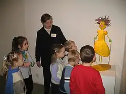 The guide and children in the St. Petersburg Toy Museum (Russia)
