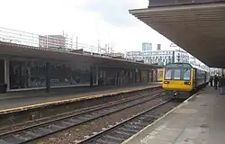 A Network Rail report suggests building platforms on the line to Liverpool (via Newton-le-Willows), the lines of which run through the station but are not provided with platforms.[12] This scheme has since been adopted by Transport for Greater Manchester and included in their Capital Works Programme for 2015–16 to 2020–21.[13] This will see an additional platform built and the old platforms 3 & 4 reopened, at a cost of £20.5 million and will allow Liverpool, Chester & Manchester Airport-bound trains (using the Ordsall Chord) to call here.[14]