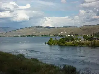 For thousands of years, First Nations used trails and waterways to travel between hunting, fishing and trading areas.[2] Prior to the 1860s, French was probably more common in parts of the interior than English. Consequently, Boute du Lac[3] (meaning foot of the lake) Indians was the name initially assigned to this indigenous group.[4] Since the Hudson's Bay Brigade Trail crossed the Thompson at Kamloops, these people would have experienced limited exposure to the French-speaking fur trade era.[5]