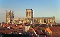 Sterne began his education at Jesus College, Cambridge in 1733 and received his orders in August 1738.[2] His first clerical position was as assistant curate of St. Ives in 1737, and the next year he became the vicar at Sutton-on-the-Forest, where he remained until 1760.[3] There, he served about 120 families of parishioners with two services on Sundays.[4] Sterne's role as prebendary of York obliged him to give two sermons a year at York Minster, though some years he gave more than twenty.[5] The extra sermons may have reflected a particular skill for preaching, or a particular interest in earning extra income.[5] Sterne delivered hundreds of sermons across his career, most of which have not been preserved.[6][7]