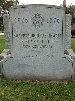 Memorial celebrating the 50th Anniversary of the Sharpsburgh-Aspinwall Rotary Club (sic).