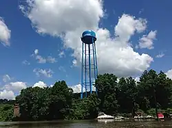 The Sharpsburg Water Tower as viewed from the Allegheny River.