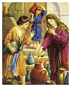 Genesis 49:20 describes the wealth of the lands of Asher: "From Asher shall come fat bread [rich foods], and he will provide delicacies of a king".[3] The relationship between fat (Hebrew: שמנה, shemeneh) and oil (Hebrew: שהנ, shemen) has been discussed by Ibn Ezra.[4] The blessings of Asher's exceptionally fertile lands is given by Moses in Deuteronomy 33:24: "May he dip his foot in oil".[5]
