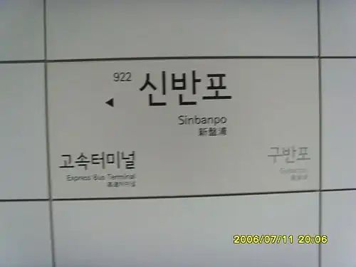 | Hangul | 신반포역 | ||