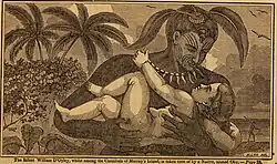 William D'Oyly being taken care of by a native named Oby. Illustration from The tragedy of the seas (1848).