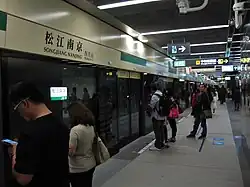 Songjiang Nanjing (Chinese: 松江南京; pinyin: Sōngjiāng Nánjīng) is a metro station in Taipei, Taiwan served by Taipei Metro. It is a transfer station between the Songshan–Xindian line and Zhonghe–Xinlu line. The station opened on 3 November 2010 for traffic on the Zhonghe–Xinlu line, and Songshan–Xindian line services opened on 15 November 2014.