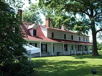 Sotterley Plantation is a historic landmark plantation house located at 44300 Sotterley Lane in Hollywood, St. Mary's County, Maryland, USA. It is a long 1+12-story, nine-bay frame building, covered with wide, beaded clapboard siding and wood shingle roof, overlooking the Patuxent River. Also on the property are a sawn-log slave quarters of c. 1830, an 18th-century brick warehouse, and an early-19th-century brick meat house. Farm buildings include an early-19th-century corn crib and an array of barns and work buildings from the early 20th century. Opened to the public in 1961, it was once the home of George Plater (1735–1792), the sixth Governor of Maryland, and Herbert L. Satterlee (1863–1947), a New York business lawyer and son-in-law of J.P. Morgan.[3]