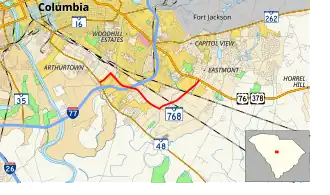 South Carolina Highway 768 Connector (SC 768 Conn.) is a connector route of SC 768 between the mainline (Shop Road / Pineview Road) and Longwood Road, south-southeast of Columbia.[4] It is known as Shop Road Extension and is an unsigned highway.[5]