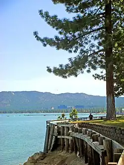 South Lake Tahoe is the most populous incorporated city in El Dorado County, California, United States, in the Sierra Nevada mountains. The city's population was 21,330 at the 2020 census, down from 21,403 at the 2010 census. The city, along the southern edge of Lake Tahoe, extends about 5 miles (8 km) west-southwest along U.S. Route 50, also known as Lake Tahoe Boulevard. The east end of the city, on the California–Nevada state line right next to the town of Stateline, Nevada, is mainly geared towards tourism, restaurants, hotels, and Heavenly Mountain Resort with the Nevada casinos just across the state line in Stateline. The western end of town is mainly residential, and clusters around "The Y", the intersection of US 50, State Route 89, and the continuation of Lake Tahoe Boulevard after it loses its federal highway designation.