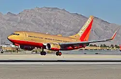 Boeing 737-300 in 2007 wearing the original Desert Gold livery that was used until January 15, 2001. This livery remains on a 737 MAX 8 in honor of founder Herb Kelleher.