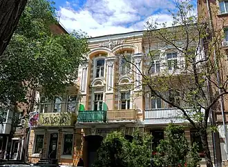 The mansion was built in 1897, and belonged to the dentist Eva Markovna Spielrein (1863-1922).[2] She lived in the house with her husband and children, with the building also housing her dentist's office.[3] Among Eva's children was her daughter, Sabina Nikolayevna Spielrein, who became a noted psychoanalyst. Sabina spent her childhood here.[4]