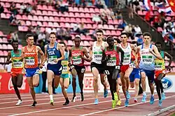 World Athletics, the sport's governing body, defines athletics in six disciplines: track and field, road running, race walking, cross country running, mountain running, and trail running.[25] Mountain running was added in 2003 and trail running was added in 2015.[26][27][28][29]