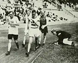 A track-side judge monitoring technique at the 1912 Summer Olympics in Stockholm, Sweden