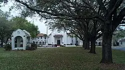 St. Charles Borromeo Catholic Church was dedicated on January 25, 1922.[9] It was constructed with a white façade and a Spanish tile roof. A statue of Saint Charles Borromeo is enshrined in front of the church. The altar stone of the church rests on a walnut tree trunk imported from Arona, Italy. The tree is estimated to be four-hundred years old and dates back to the time Charles Borromeo was in Arona, Italy (16th century).