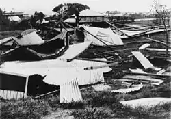 On 9 March 1903 Cyclone Leonta destroyed the second St John's Church of England and Vicarage at Ross Island. Photographs of the site taken shortly afterwards show a pile of tangled timbers and iron roofing. The local press reported that the church furniture had been saved through the efforts of the incumbent priest, the Rev. Goodchild.[1]