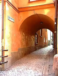 Vault of Staffan Sasses Gränd viewed from Köpmangatan.