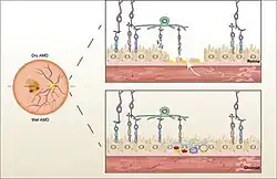 - Bhutto I, Lutty G (August 2012). "Understanding age-related macular degeneration (AMD): relationships between the photoreceptor/retinal pigment epithelium/Bruch's membrane/choriocapillaris complex". Molecular Aspects of Medicine. 33 (4): 295–317. doi:10.1016/j.mam.2012.04.005. PMC 3392421. PMID 22542780.